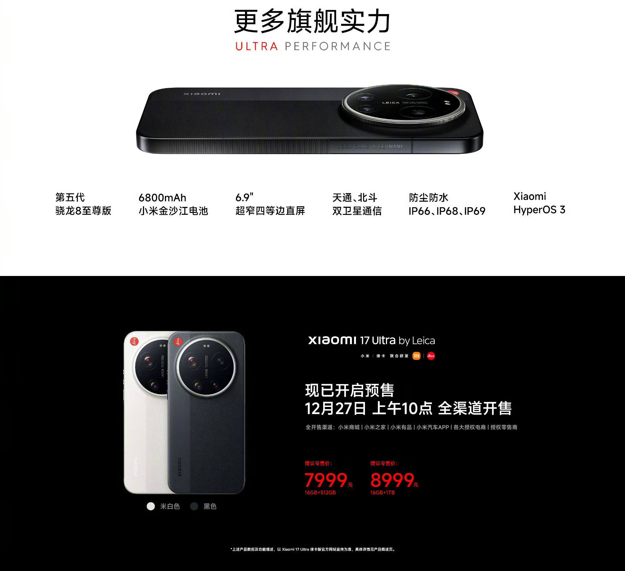 Untuk menopang sistem kamera yang kompleks, Xiaomi 17 Ultra ditenagai Snapdragon 8 Elite Gen 5 dari Qualcomm, dipadukan dengan RAM LPDDR5X dan penyimpanan UFS 4.1. Xiaomi juga menerapkan sistem pendinginan dua jalur yang memisahkan pembuangan panas antara chip utama dan modul kamera.